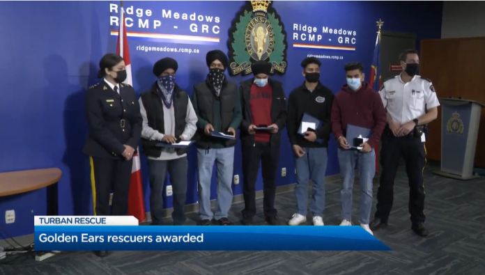 VANCOUVER, CANADA – Several Sikh men were honored by the Royal Canadian Mounted Police (RCMP) for helping rescue two stranded individuals from Lower Falls at Golden Ears Park on October 11th.