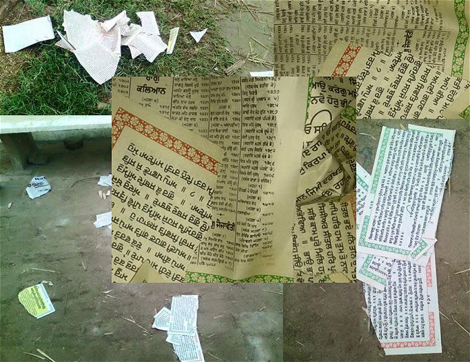 MOGA, PUNJAB (SNN) – In yet another outrage, residents of the village of Malke, near Bargari, discovered dozens of torn Angs of Guru Granth Sahib Ji thrown across the village streets. It is unsure if these Angs are from the same Saroops that were stolen from Burj Jawahar Singhwala which is not too far from this location.