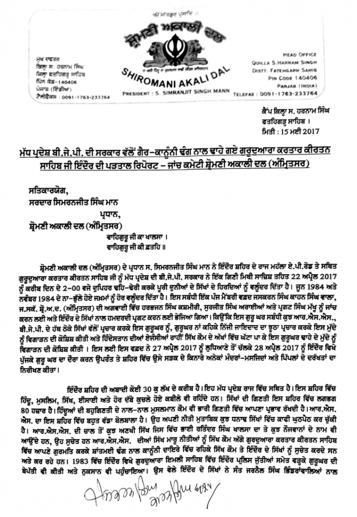 The fact finding report by Shiromani Akali Dal (Amritsar) is as follows: